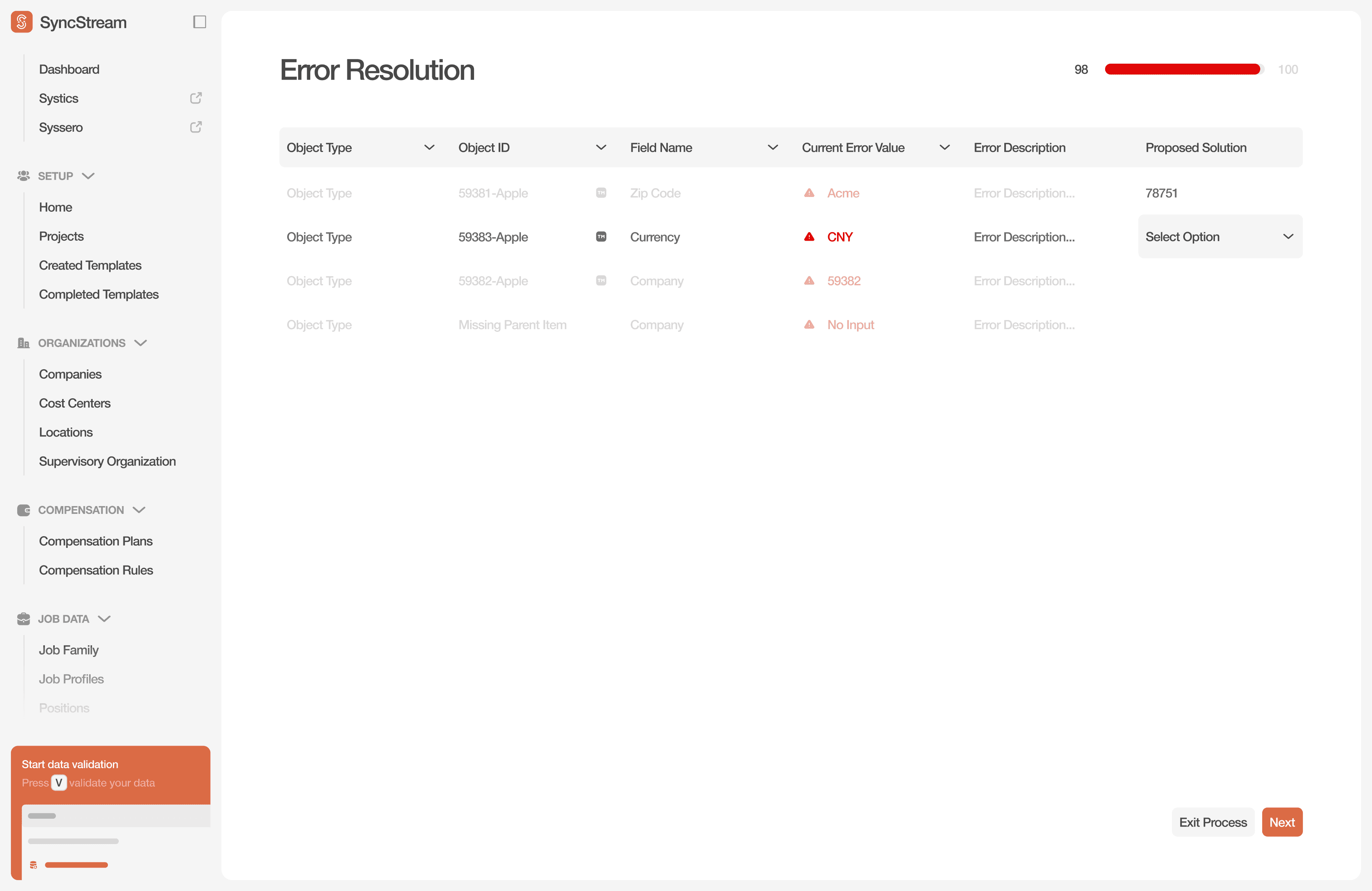 I led the design of a data validation platform for a Workday partner, transforming complex migration errors into structured, actionable workflows that help enterprise teams diagnose and resolve issues before system sync.